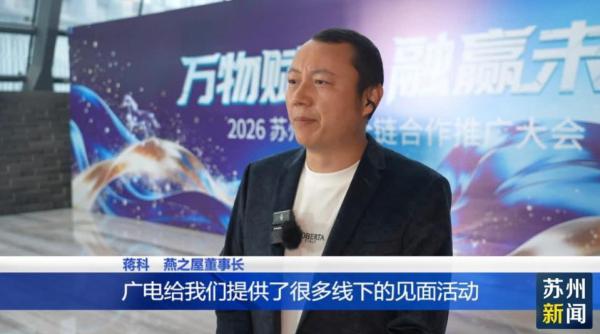 2025年,苏州广电获评首届“全国宣传系统先进集体”,是江苏省内唯一入选的城市广电媒体;3件作品获中国新闻奖;纪录电影《我在苏州学非遗》入选2025江苏省国际传播重点项目;累计上线33部微短剧。同时,旗下三大文化产业项目全年客流突破千万人次,还建设了苏州数智融媒创新联合体和苏州市人工智能创新应用实验室。2026年,苏州广电将紧抓苏州市入选“三新”试点城市的有利契机,深化广电视听与文商体旅农展融合,与广大合作伙伴携手抢占新风口、再创新优势、实现新增长。