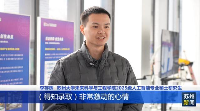 苏州大学未来科学与工程学院2025级人工智能专业硕士研究生李存辉介绍,自己的研究方向是用AI技术去分析微波传感器接收到一些数据,将智能技术和物理传感相结合,得知录取非常激动,想利用好这个机会,在联合国这样的平台,有更好的国际视野。