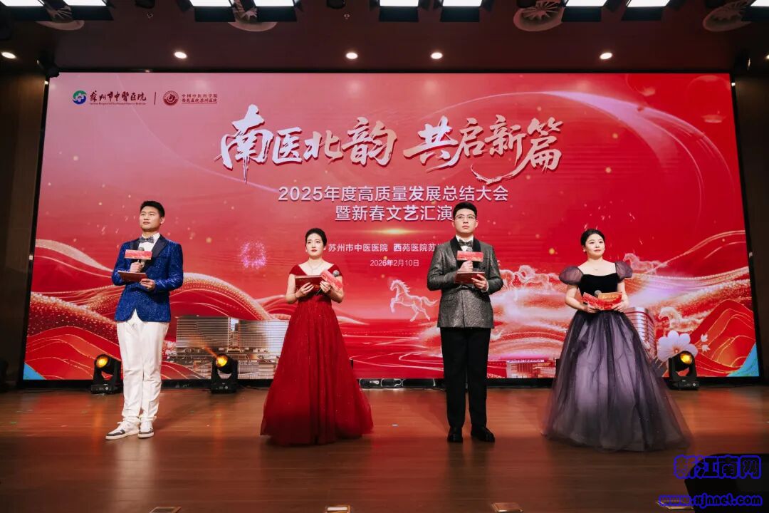2月10日下午,苏州市中医医院、西苑医院苏州医院举办“南医北韵 共启新篇”2025年度高质量发展总结大会暨新春文艺汇演。苏州市卫生健康委员会党组成员、副主任张志芳,苏州市卫生健康委员会中医处副处长黄忠仁,医院领导班子成员及部分老领导、老专家、西苑医院常驻专家、江苏省名中医代表等出席本次活动。