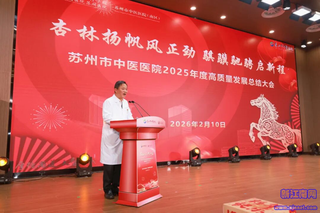 苏州市中医医院党委书记、西苑医院苏州医院院长贾秋放作年度工作总结报告。他指出,2025年是医院在高质量发展道路上稳步跨越、铸就辉煌的一年。西苑医院苏州医院正式启用,形成“一院两区、一体化发展”格局,专科能力、科研水平稳步提升,南北协作成效显著。同时,医院坚守中医药传承创新初心,在服务优化、科研教学、人才培养、医院管理等多领域实现突破。2026年是谋划“十五五”良好开局的奠基之年,医院将继续锚定高质量发展目标,深化京苏融合,奋力开启医院发展新征程。
