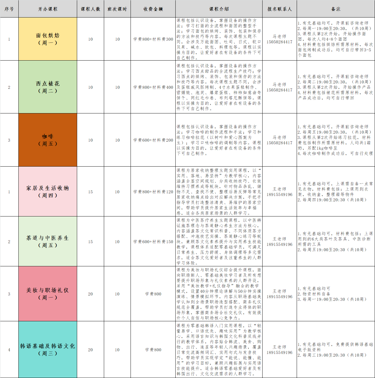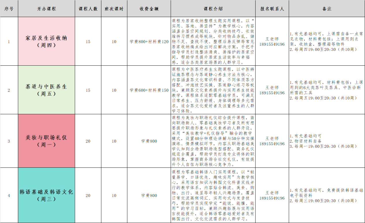 此外,我们的新课还有:萨克斯演奏、家居及生活收纳、美妆与职场礼仪、韩语基础及韩语文化……