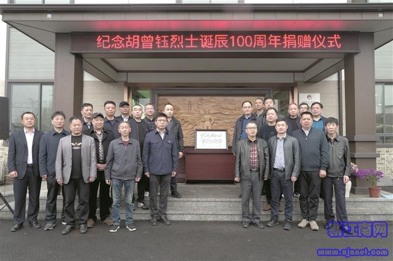 胡家渡村位于无锡市惠山区金惠社区,社区副主任胡小丰介绍,胡曾钰是他们村第一位女烈士,近一个世纪过去了,几经变迁,女英雄家原址已不复存在。本次去高邮缅怀英烈之前,村里的爱心企业家准备共同捐资定制胡曾钰烈士抗日英雄形象的大型香樟木刻浮雕匾。“胡氏女儿别乡关,不破倭奴誓不还。冰河含悲掩忠骨,英魂可慰已新天。”四月初,一块雕有胡曾钰烈士形象、并配以《巾帼忠魂》诗文的大型香樟木刻颂匾捐赠给远在300里外的高邮。这块木雕颂匾长3.6米,高2.24米,多名工匠历时23天合作完成。