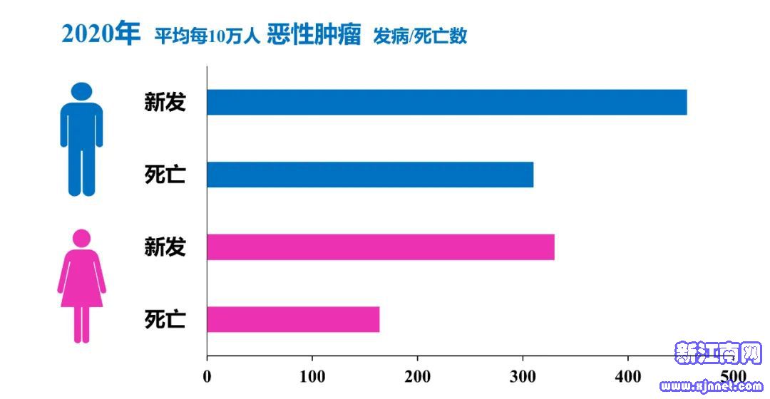 总体上,男性恶性肿瘤发病和死亡水平均高于女性。