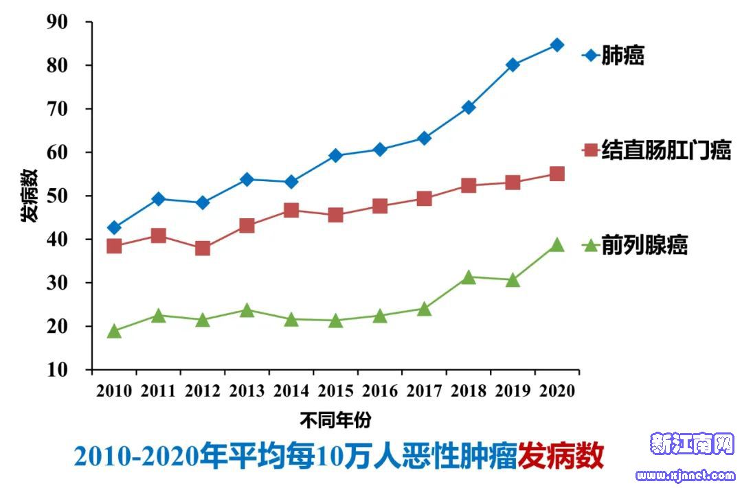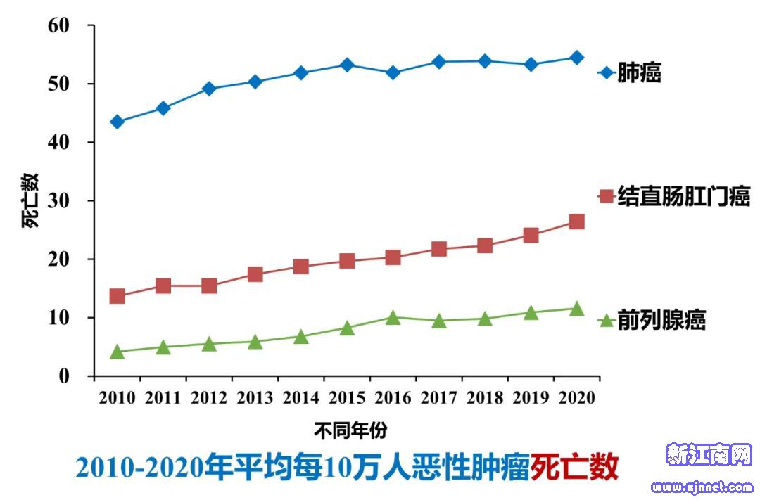 近10年监测数据显示,我市居民肺癌、肠癌和前列腺癌的发病、死亡水平呈不断上升趋势;食管癌、肝癌死亡已呈下降趋势。