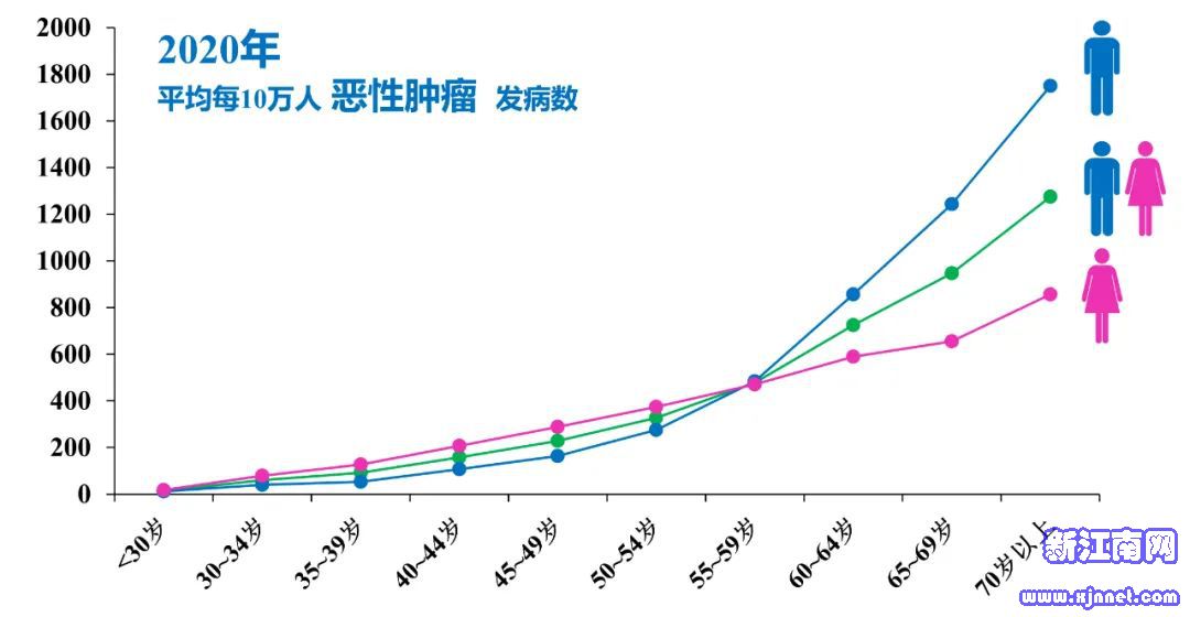 自40岁开始,无锡市居民恶性肿瘤发病水平呈现快速上升趋势。