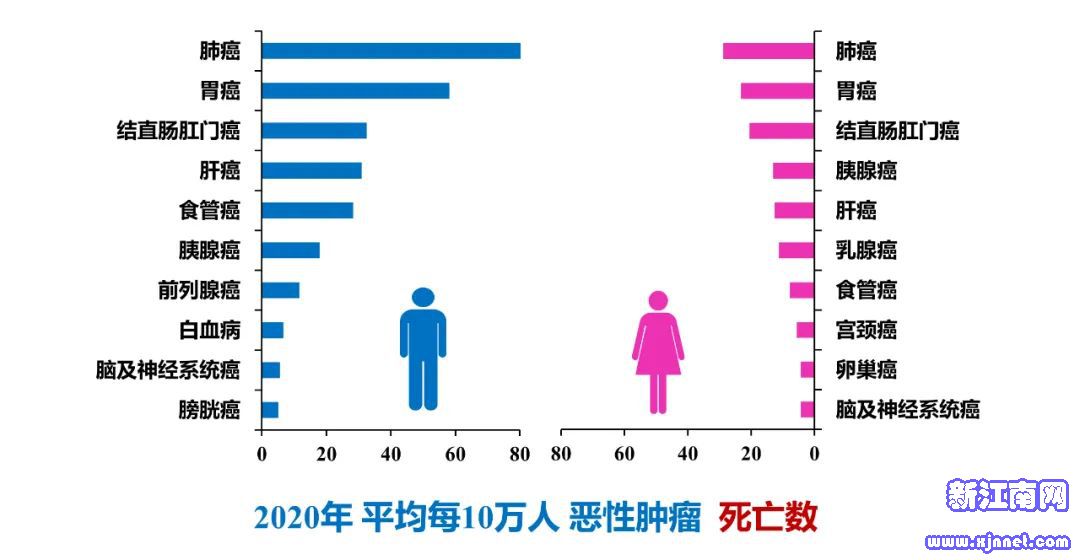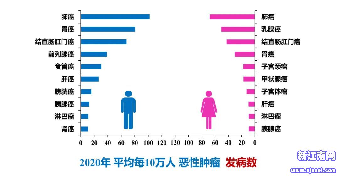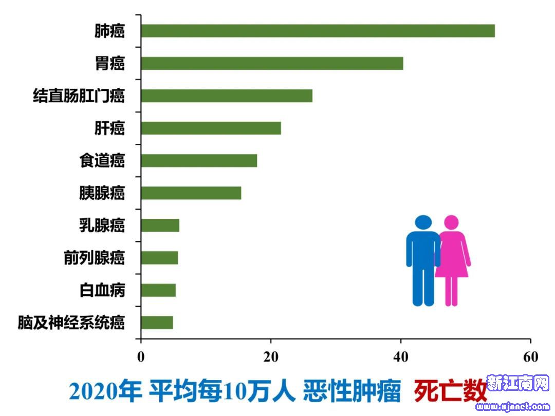 肺癌、结直肠肛门癌、胃癌和女性乳腺癌是威胁无锡居民生命健康的主要恶性肿瘤,位于发病和死亡前三位。