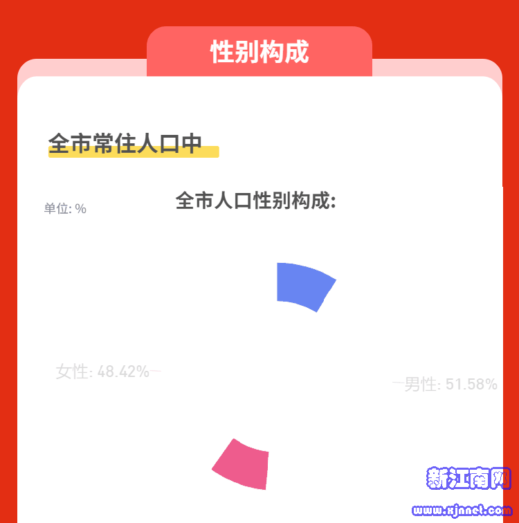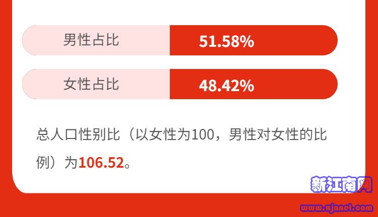 第七次人口普查结果显示,无锡常住人中男性384.89万人,女性361.33万人,总人口性别比为106.52,比上一次人口普查降低了1.24个点。从全国来看,总人口性别比为105.07,较上次基本持平;全省的总人口性别比为103.15,较上次上升了1.61个点。由此看来,由于外来青壮年的大量涌入,无锡的常住人口性别比要高于全国和全省平均,但从两次普查的波动情况来看,性别比下降幅度明显快于全国、好于全省,男女性别比例进一步趋于协调。