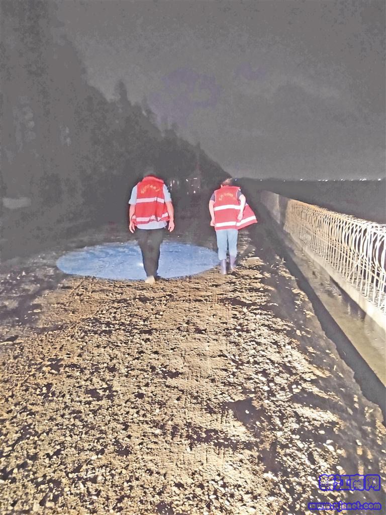 昨日凌晨,周铁镇组织人员巡查太湖大堤。