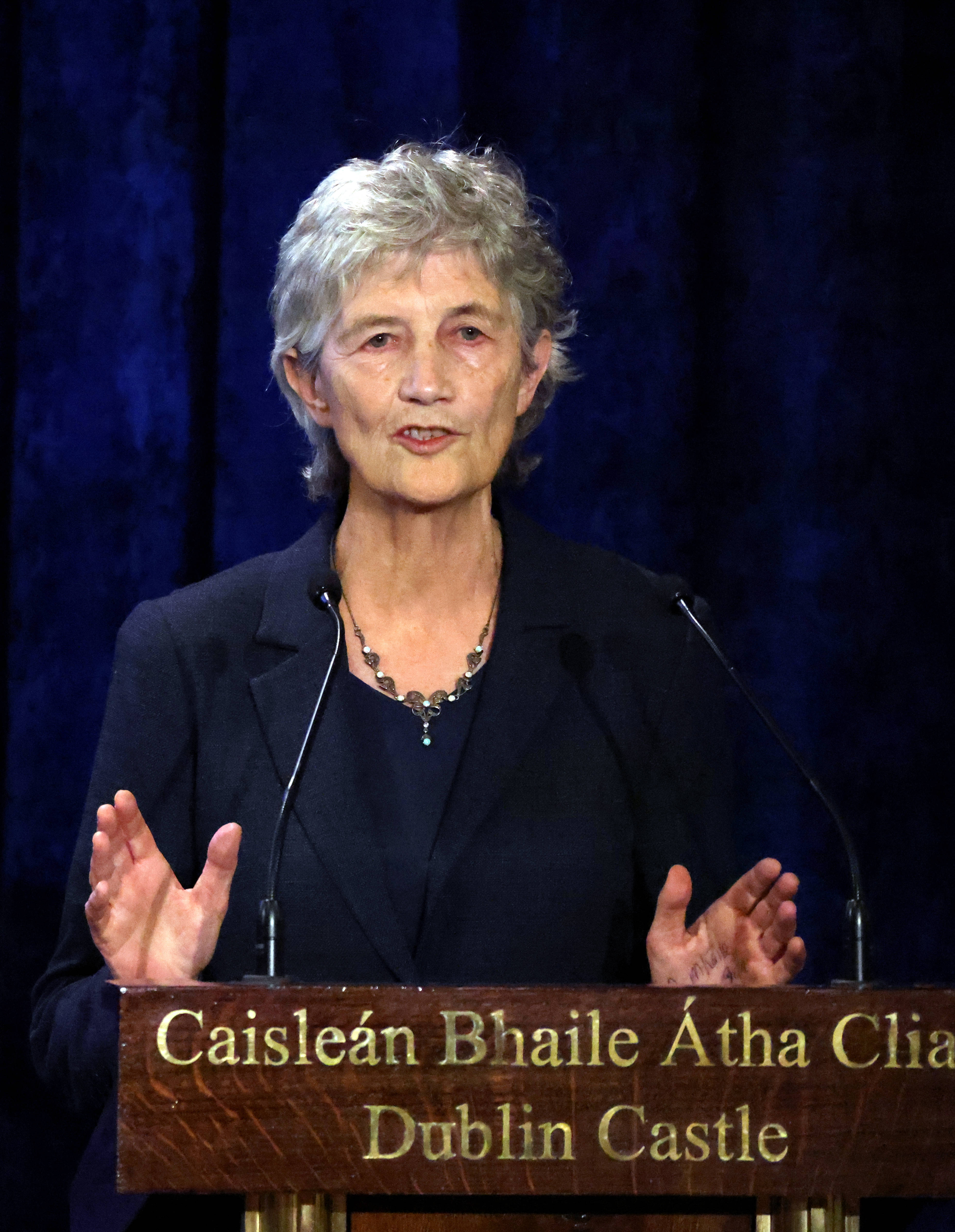 10月25日,在爱尔兰首都都柏林,凯瑟琳·康诺利获胜后发表讲话。 新华社发(埃蒙·法雷尔摄)