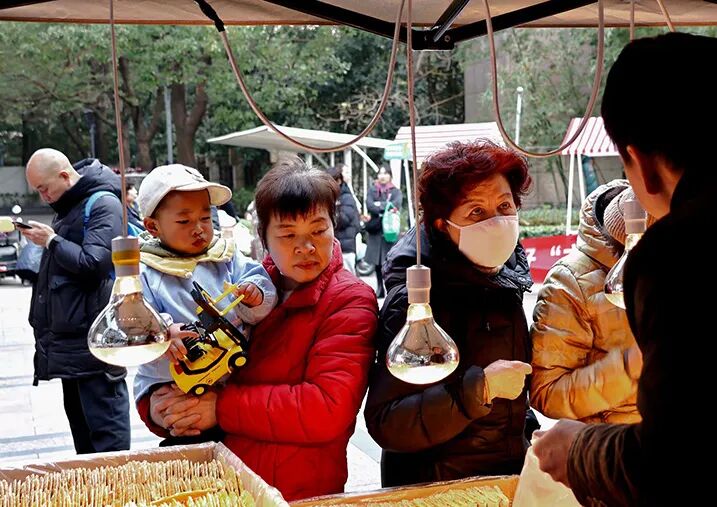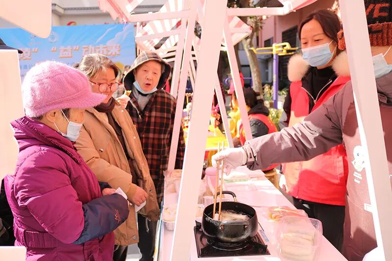 工一、工二社区的以爱引“陵”,“益”动未来公益集市,摊位上摆满了各式各样的年货,有美食、虎头鞋、理发、便民服务等摊位。居民们穿梭在摊位之间,欢声笑语不断。大集上还有豆腐汤等常州传统小吃,喝上一口热气腾腾的豆腐汤,儿时记忆瞬间在口中散开,唤起了童年的美好回忆。在这里,不仅能够收获到心仪的年货,更能重拾那份久违的烟火记忆,感受到春节独有的热闹与欢乐。