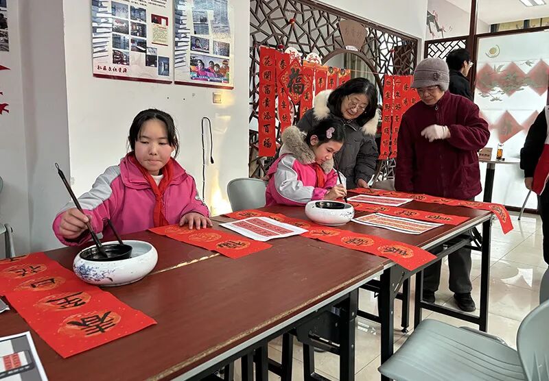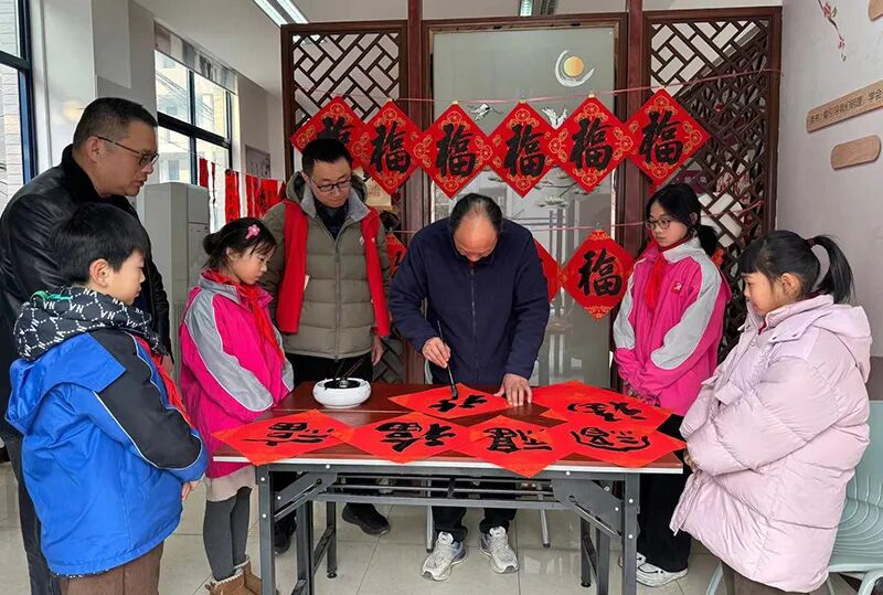 浦北社区社工室与属地兰陵小学在兰陵书苑联合举办了一场“翰墨薪传,万福迎春”写春联、送福字活动,来自兰陵小学的书法老师们和爱好书法的同学们纷纷挥毫泼墨。一幅幅充满新春气息的对联、一个个饱含美好寓意的“福”字在他们笔下诞生。