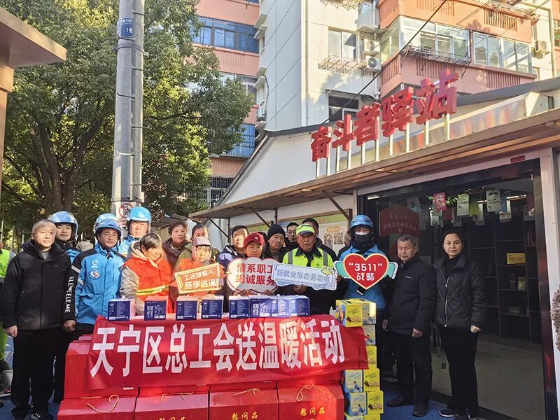寒冬腊月,户外劳动者们仍坚守岗位,为城市的正常运转默默付出。天宁区总工会、兰陵街道总工会来到工二社区,在奋斗者驿站,为出租车司机、快递员、外卖员、环卫工人等送上了冬日的温暖。一份份装满年货的“暖心礼包”,传递着对他们辛勤工作的认可与敬意。让这些在寒风中奔波的身影,感受到来自社区大家庭的关怀,体会到这座城市的温度。这些户外劳动者也是社区的“志愿”模力团成员,长期反哺服务社区居民。