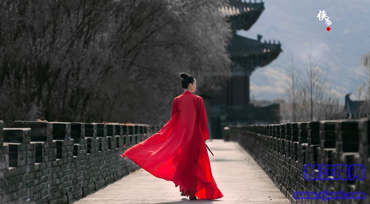 无锡市西南郊的三国影视城气势雄伟,漫步其中,每一座辕门、每一块砖石都仿佛诉说着那纷争乱世中一个个惊心动魂的故事。在高耸古老的城墙上,模特穿上一袭红衣,手执古剑,在绿树青砖中,阔步前行,仗剑走天涯。Bgk新江南网|江南区域知名综合门户网