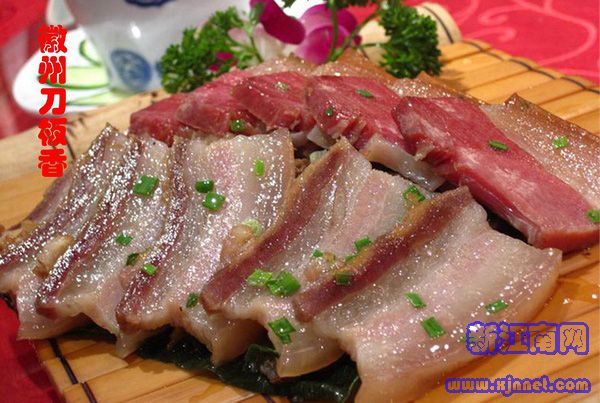 用腌咸肉制成的“刀板香”是徽州菜的代表作之一,也是徽州人待客的一道主菜。在焖蒸过程中将之置于上等香樟木板上,所有油腻皆被木板吸走,既保持了肉的咸鲜又油而不腻。