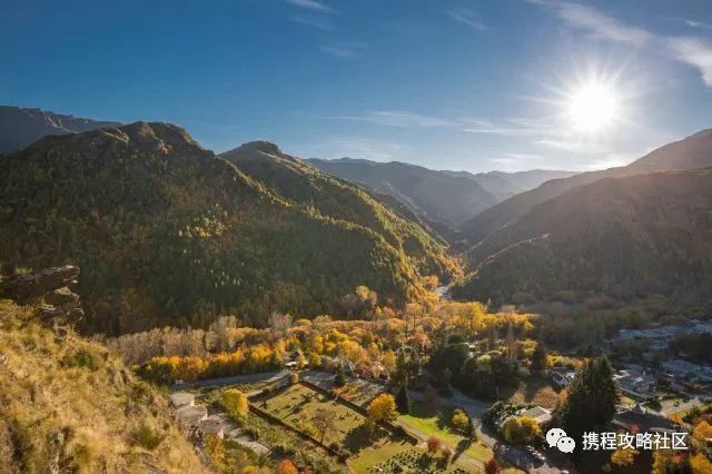 与皇后镇相比,这里的阳光穿透力更强,尤其在清晨,树上的叶子都变成了金叶子。金黄的树叶挂满枝头,整个山头都是金黄的。