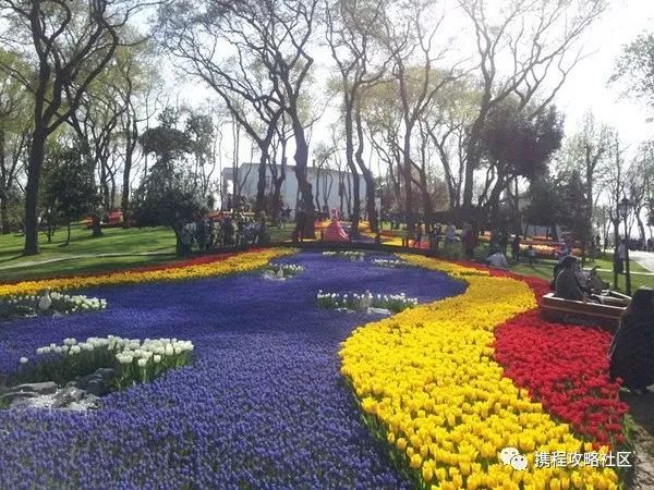 如果没有时间去到公园专门赏花,没关系,在地标建筑蓝色清真寺的身后,便是伊斯坦布尔著名的苏丹阿赫迈特广场,这里也将会有郁金香组成的巨型“花毯”供游客欣赏。