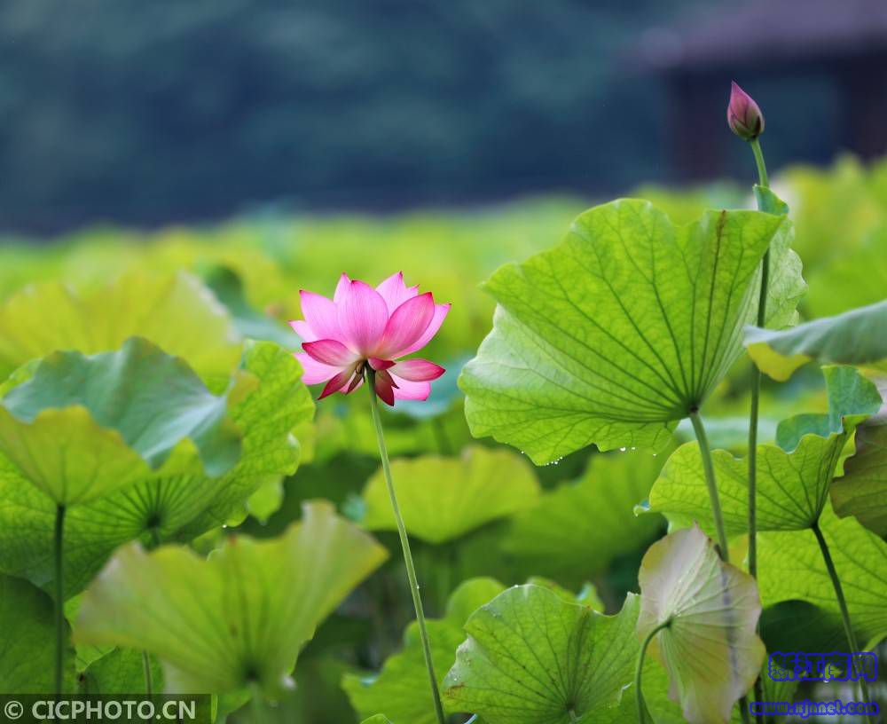 ↑这是2021年5月21日在广西贺州市爱莲湖拍摄的开放的荷花。CICPHOTO/廖祖平 摄