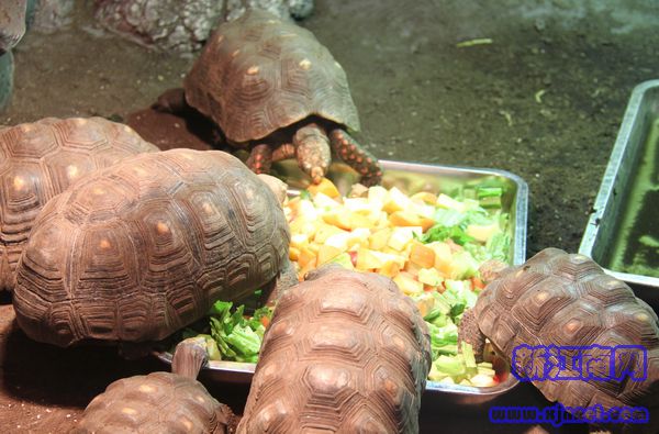 两爬馆内三楼生活着数种珍稀陆龟,它们对于冬季的环境温度要求较高,除了要有uv灯替代日光浴外,还需要注意照射时长及安装位置、距离,保证饲养环境的湿度等。对于温度,白天控制在26—30℃,夜间控制在24—26℃。对于饮食,除了要提供清洁的饮水外,食物以龟粮为主,辅以新鲜蔬果及青草等。