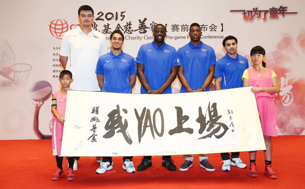 这是2015年姚基金慈善赛赛前发布会,左侧前排小球员是胡岩。