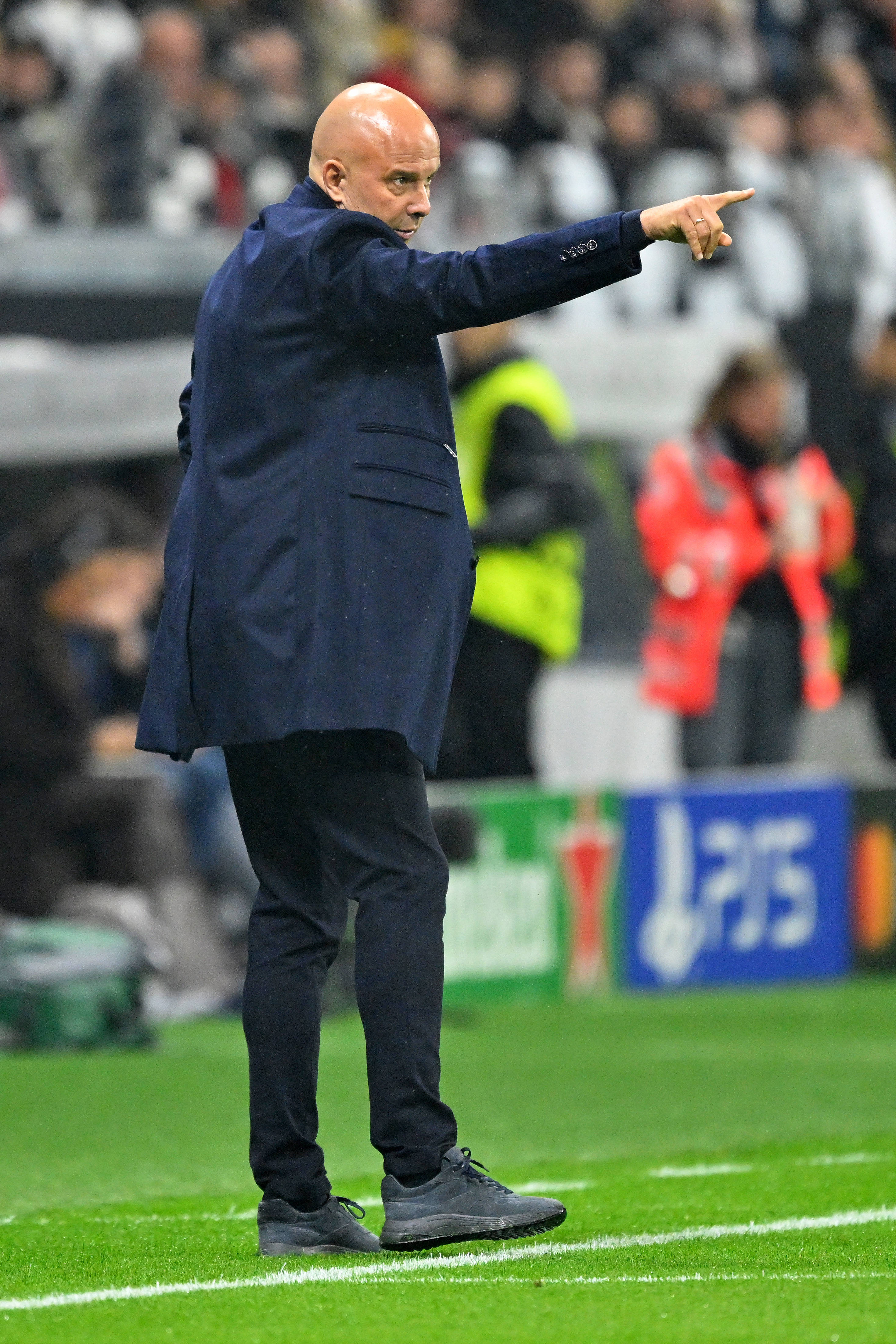 10月22日,法兰克福队主教练托普默勒在场边指挥。 新华社发(乌尔里希·胡夫纳格尔摄)