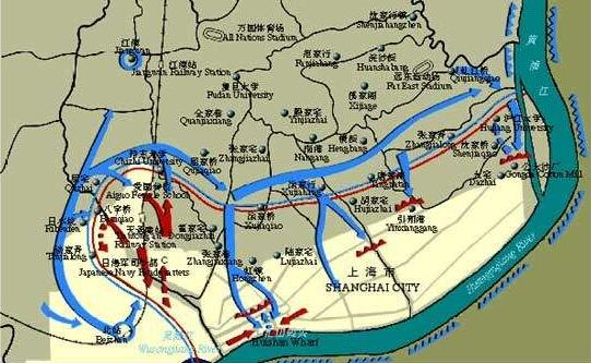 日军在上海市区的阵地宛如一条"长蛇"