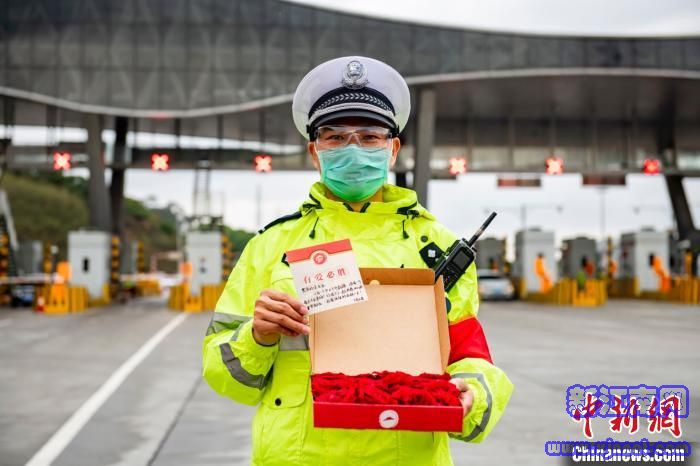 一线交警收获情人节礼物 何旭婷 摄