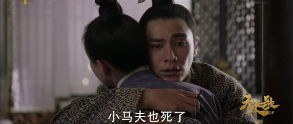 小马夫偷听到阿耶要处死凤知微二人,便想救他们出去。将昏迷的顾南衣用杂物掩盖后,老马夫也带着人来了,小马夫让凤知微快去牵马,自己出来阻拦阿耶。小马夫不想和阿耶一样苟且偷生,但他阿耶执迷不悟,命人推开了那扇关押的大门,里面凤知微正在牵马。老马夫见到凤知微便拿起了暗器发射出去,小马夫却一个飞身为凤知微挡住了,凤知微顿时泪目,可小马夫临死时还把门关上,将她送上马。马儿受惊飞奔而去,留下老马夫抱着小马夫的尸体。