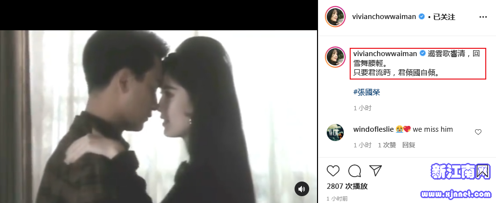 周慧敏晒出与张国荣昔日的电影片段,引用李商隐《歌舞》的诗句表达对哥哥的思念。