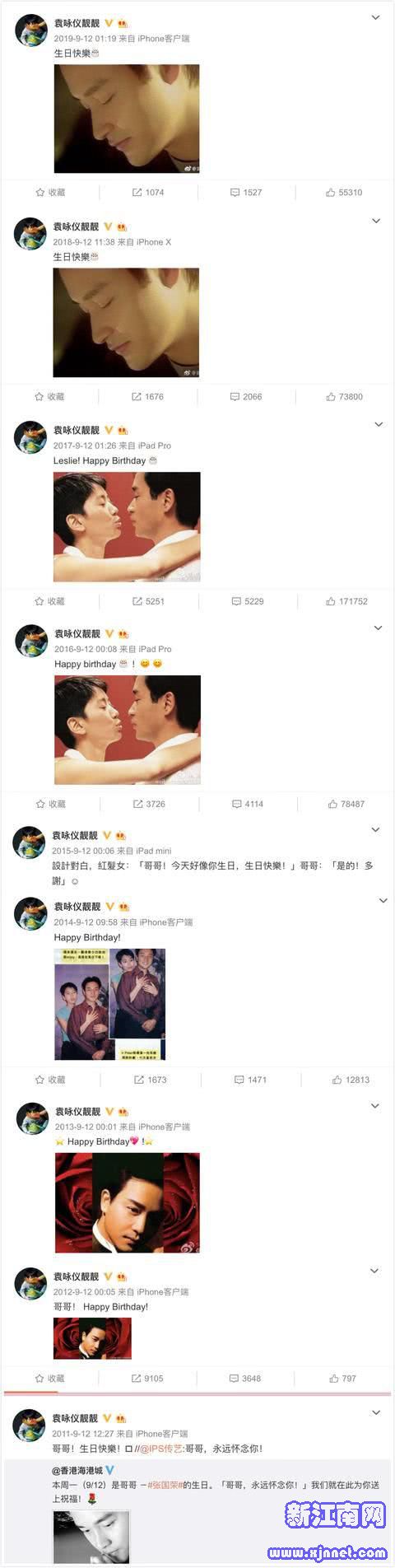 袁咏仪已经持续多年在张国荣的忌日发博纪念。
