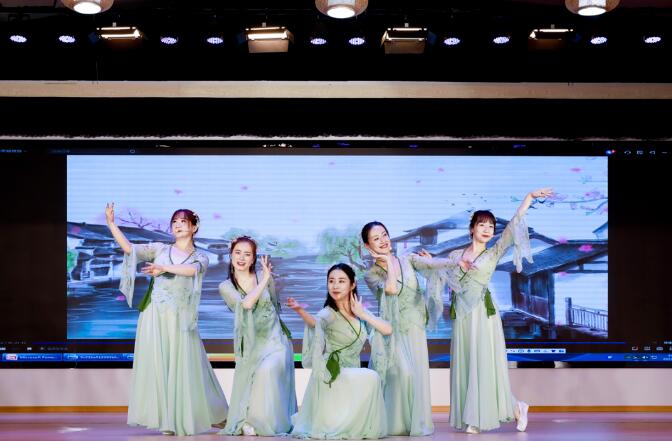 女声演唱《寻味运河南》让大家联想到运河沿岸的风情美景和历史文化;二胡独奏《潇洒走一回》那熟悉的旋律仿佛带我们回到了永远怀念的八九十年代;排舞《又见江南雨》优美动人的舞姿表现了江南雨季的柔美。此外还有婺剧选段《山雨欲来风满楼》、琵琶独奏《莫吉托》、武术《太极拳表演》、女声小组唱《采茶舞曲》、独舞《花儿姑娘》等精彩表演,现场掌声不断,气氛融洽。最后的男女声对唱《花开运河畔》仿佛把大家在不同场景中游览一遍后又带回了美丽的运河畔,以运河为纽带使拱墅和建德两地人民的情谊加深融汇。