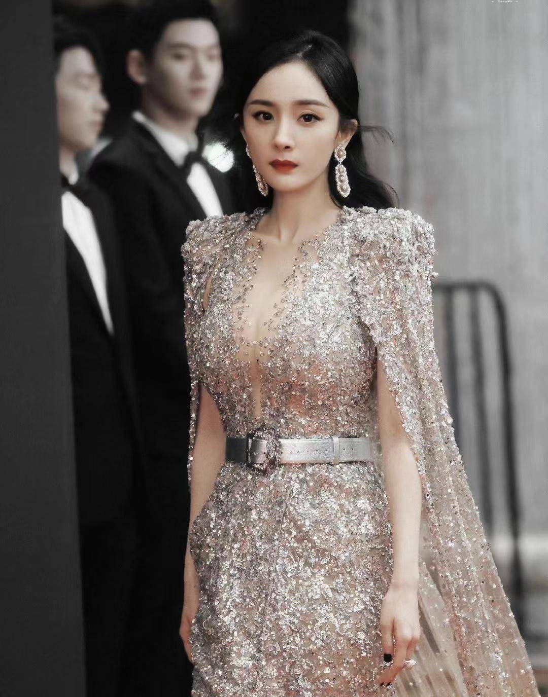 作为可盐可甜的代表,大姐既可以穿搭纯种少女,也可以穿搭时尚女王。在大秀中,她以一身银色披肩长裙扮相高贵的女王,赚得盆满钵满。注意仪式。下面我们来分解一下这件衣服的造型。首先也是最重要的是礼服中使用的最引人注目的面料。网纱裙上点缀着银色亮片,仿佛这件连衣裙是用银子打造的。在阳光的折射下,承载者的高贵气质显得光彩照人,生机勃勃。其次是礼服的设计和围巾的加入,让她的上半身立体立体挺拔,围巾更能彰显女王风范。深V领把姐姐的时尚身材尽收眼底。雪白的天鹅颈和锁骨,银色的腰带勾勒出曼妙的曲线,呈现出完美的腰臀比例。大姐此刻优雅迷人,时尚女王。