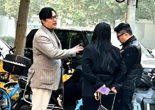 10月26日,北京初雪未至,却已寒气袭人。下午三点左右,朝阳公园西路一家咖啡馆门口,有网友意外撞见“名嘴”李湘与导演前夫王岳伦并肩而立。两人均双手背后、身体微倾,姿势神同步,像极了一对“退休老干部”。镜头里,王岳伦身穿灰色细条纹西装、白色西裤,皮鞋锃亮,却难掩隆起的小腹;李湘则是一身黑色“工装”连体服,微卷长发披肩,手拎一只限量款爱马仕,气场两米八。网友调侃:“这哪是离异夫妻,分明是‘董事长’带着她的‘副总’出来巡店。”