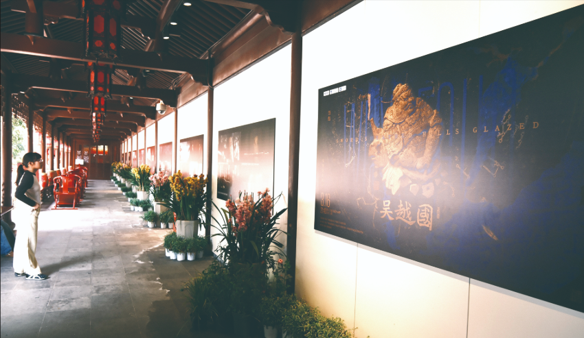 近日,“一剑千年——《吴越国》纪录片主题特展”在钱王祠正式开展,实现影像内容与实景展示的有机衔接,让千年吴越文化以更直观的形式走近公众。作为纪录片从屏幕到现场的延伸,本次特展以“一剑千年”为主题,精心展陈影视拍摄中的专业道具、场景手稿与精美影像,全方位展现纪录片创作匠心与吴越历史风貌。图为昨日,市民在展览现场观展。
