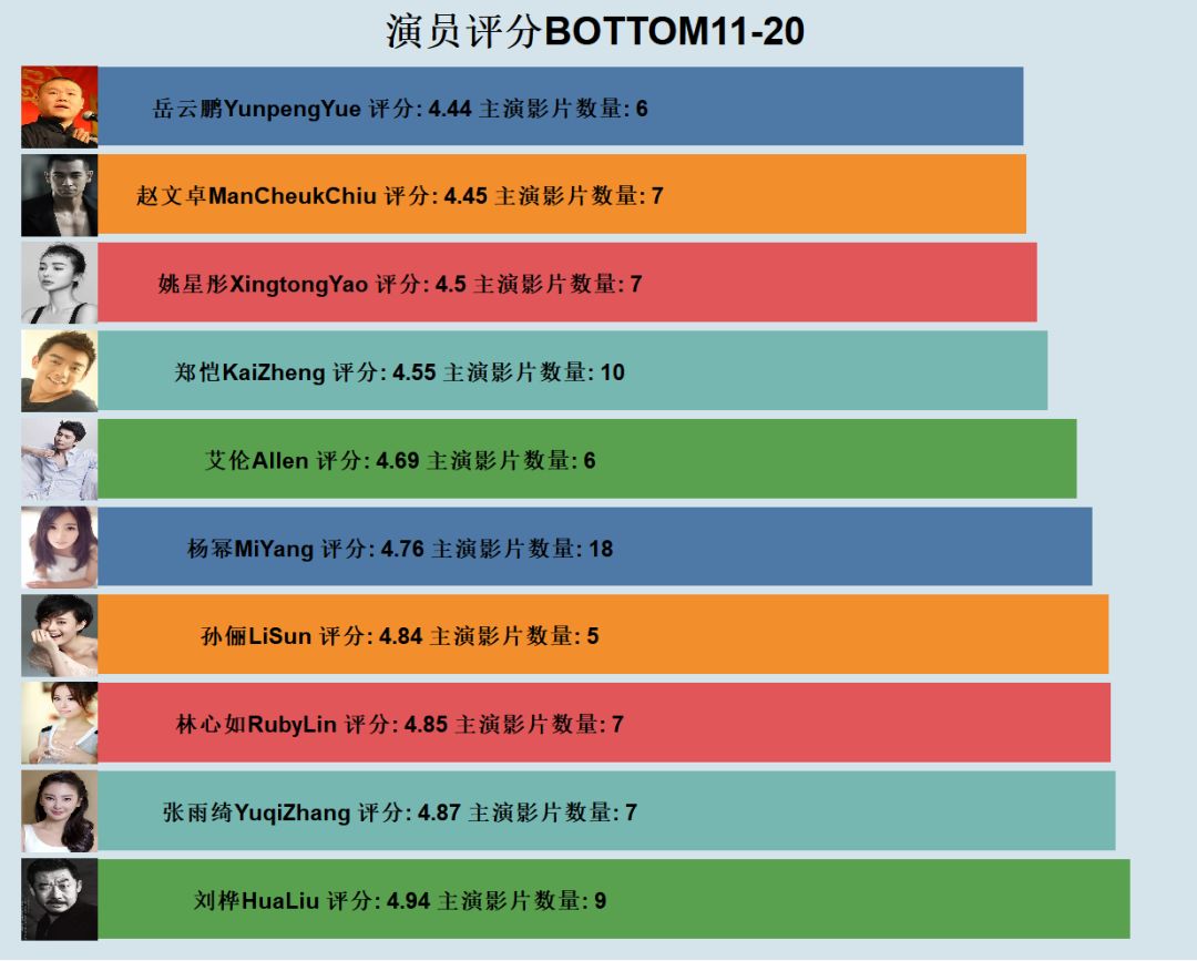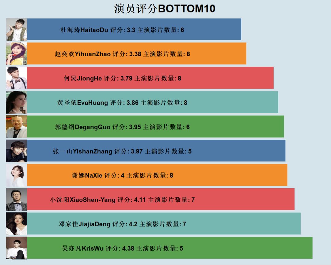 下面看一下评分排在倒数的演员,首先看下BOTTOM10: