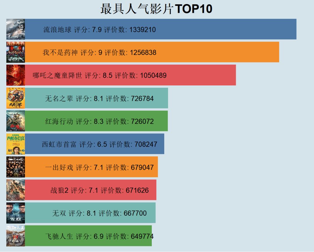 可以看到在所有的影片中,人气TOP10的影片评分都还是不错,流浪地球,药神和哪吒也都在票房中有非常不错的表现,显然,这不是我们需要,我们下面就来看下烂片和超级烂片中的人气榜: