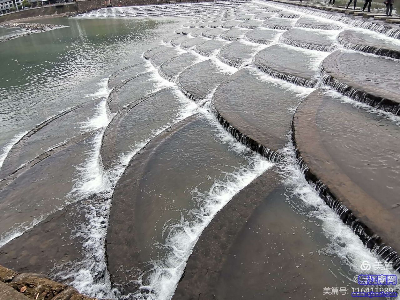 下午1时许,来到行程的最后一个景点一一浙江富阳龙鳞坝台阶瀑布。龙鳞坝本来只是一座普通的水闸,但自从有网友把这里的视频发到网上后,受到了众多网民的追捧,使龙鳞坝台阶瀑成了一个颇受欢迎的网红景点。