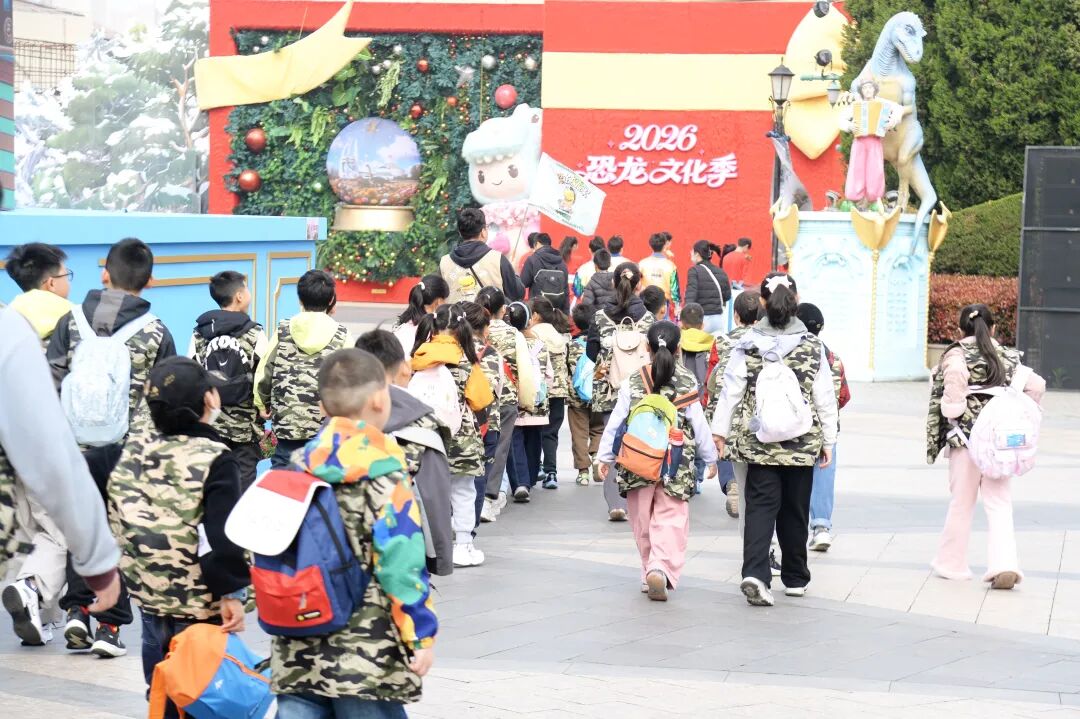 作为春假研学的“顶流”打卡点之一,中华恐龙园“侏罗纪探秘营”首日迎来250名研学学生。在科普导师的带领下,他们化身“小小考古家”,走进“史前科普课堂”,全天预计近万名儿童走进这一沉浸式科普课堂。