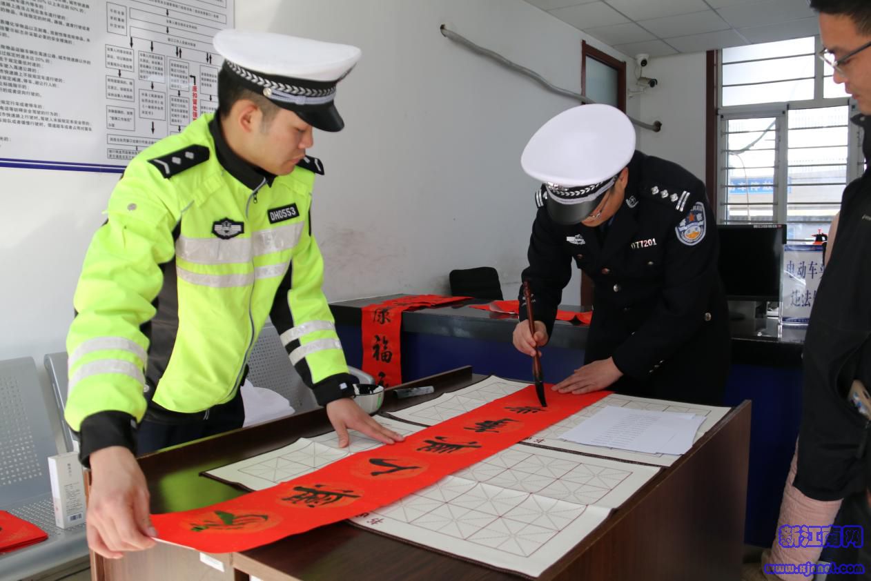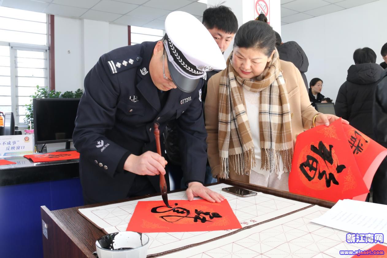 东海:笔墨传情送平安 警民携手贺新春