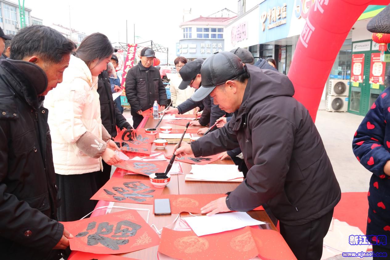 活动现场,长桌排布,红纸纷飞,镇诗词协会的书法家们神情专注,提笔挥毫,笔走龙蛇间,一副副寓意吉祥的春联、一个个饱满喜庆的“福”字跃然纸上,承载着对新年的美好期许,寄托着对生活的真挚祝福。