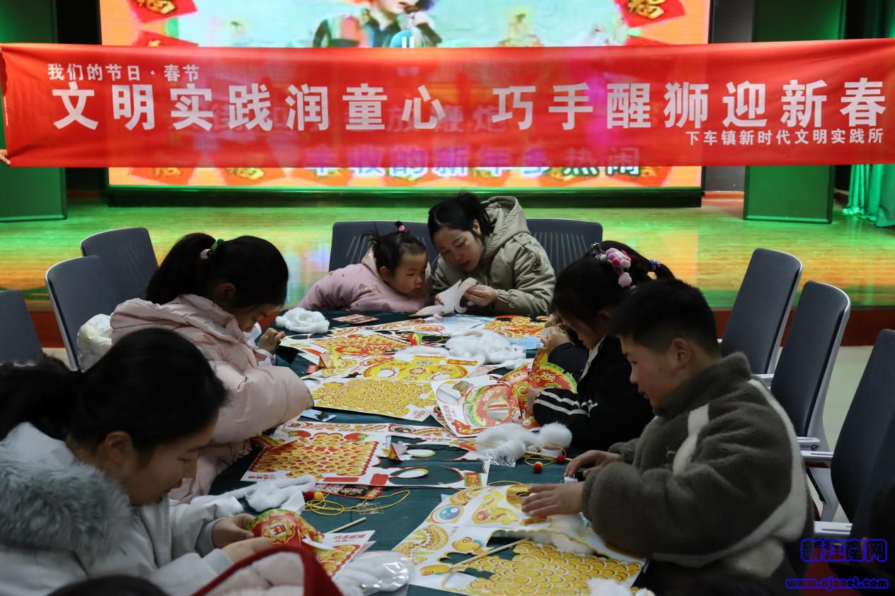 巧手传非遗,年味沁心田。为传承弘扬中华优秀传统文化,下车镇开展“我们的节日·春节——文明实践润童心 巧手醒狮迎新春”主题活动。活动现场,孩子们在志愿者的耐心指导下,手持彩纸、胶水等材料,一步步制作醒狮手工。看着自己的劳动成果,孩子们的脸上洋溢着自豪的笑容。此次活动不仅锻炼了孩子们的动手能力,更让他们近距离领略醒狮文化的魅力,在心中播下传承传统文化的种子。