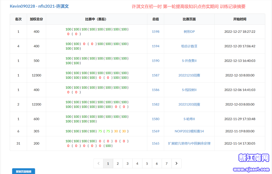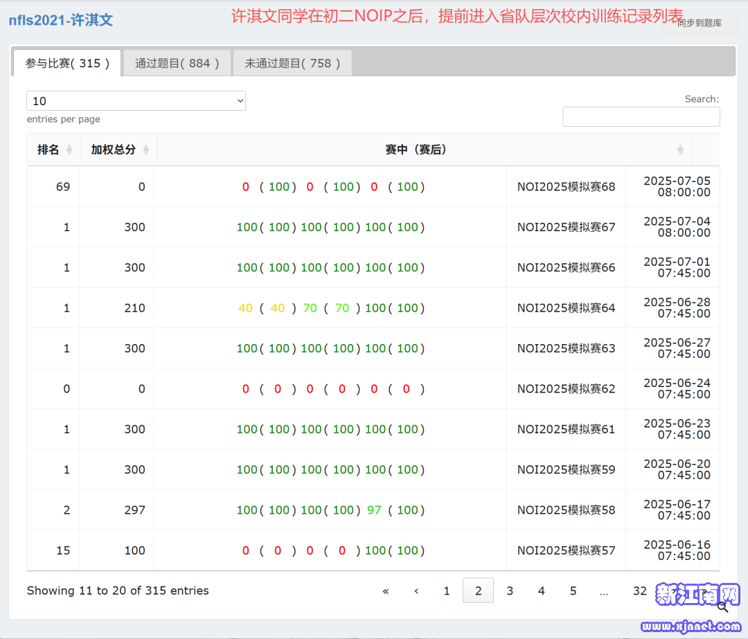 为何能在多次比赛中保持稳定发挥,并能保持长时间高强度的努力?许淇文说:“其实能保持努力的主要原因还是因为热爱,南外有一大批真正热爱信息学的同辈和真懂信息学的老师,我们共同享受算法竞赛的过程,校内节奏稳定的平台比赛,能给我带来连续不断的享受。想要保持住排名并继续向上冲击的过程,也很需要一直努力,热爱和氛围能促使着我不断保持训练状态。”南外信息学竞赛训练中不仅培养各层级比赛的冠军,更孕育着一种“传帮带”的文化。许淇文不仅是优秀的选手,更是团队的奉献者。他和伙伴们曾多次受邀参与大学生ACM竞赛的命题工作,为选手们提供了很多优质的题目。张超老师欣慰地告诉记者:“训练记录里,能看到他当年向南外信竞学长戴江齐、程思元请教代码的痕迹;而现在,他的过程代码、赛后题解,以及模拟考试的分数分布,都成了学弟学妹们的宝贵资源。”在每次模拟赛后的讲题环节,许淇文总能以开阔的思路、活泼的性格带动全场氛围,深得师生信任。提到张超老师和信竞同侪们的“传帮带”,许淇文说:“张老师的训练安排非常有规律且劳逸结合,让我能保持一个稳定的训练作息,他布置的题目的来源多样,也很独特。我经常能在这样的训练过程中,带来对题目很特别的理解。我在答辩时提到,编程不是一个人的运动,在这一路前行追求极致的过程中,不仅自己要向上攀登,还必须在教练的指导下帮助后辈,团队作战,总会让大家都走得更远。”从校内OJ到QOJ、CodeForce,许淇文的训练轨迹遍布全球竞赛平台,他说:“在NOI结束之后,我的训练目标从国家集训队转向国家队,训练方向从原来的传统题转向了国家队选拔赛题型,并且增加了难度更高的模拟赛来训练以适应特殊情况,保持对难题的手感。”