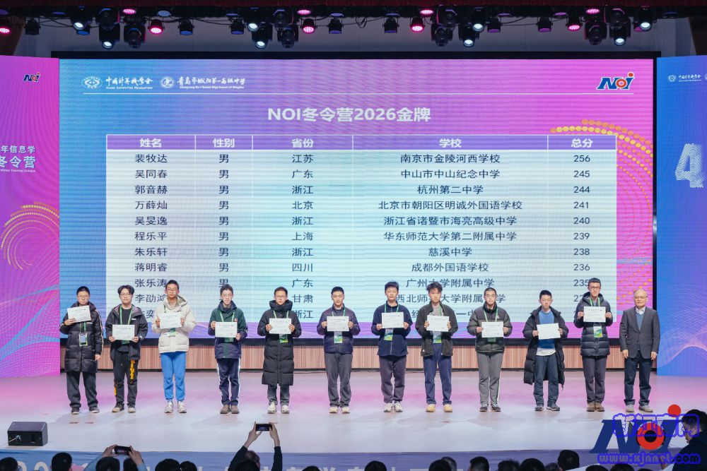 IOI 2026中国国家队成员合影(左起:蒋婷婷、何宇翔、赵晟昊、刘家炜、许淇文、赵启阳)他们将代表中国参加于2026年8月9日至16日在乌兹别克斯坦举行的第38届国际信息学奥林匹克竞赛(IOI 2026)。IOI 2026中国队领队由NOI科学委员会主席、北京航空航天大学赵启阳博士担任,NOI科学委员会资深委员蒋婷婷教授担任副领队。本次冬令营不仅是竞技的舞台,更是前沿科技的试验场。为了探索未来信息学竞赛的可能形式,积累经验和数据为未来相关决策提供数据支持,本届冬令营首次并行设立有AI辅助编程的测试。活动邀请了全国30位顶尖选手接入“千问”“DeepSeek”两大系列共四个大模型进行人机协同测试,题目和其他软硬件环境与本次冬令营常规测试均保持一致。AI辅助编程测试活动单独评奖,最终评选出金牌3名、银牌6名、铜牌10名。来自南京外国语学校的沈钰川同学受邀出战,获得银牌,也是江苏唯一获奖的选手。
