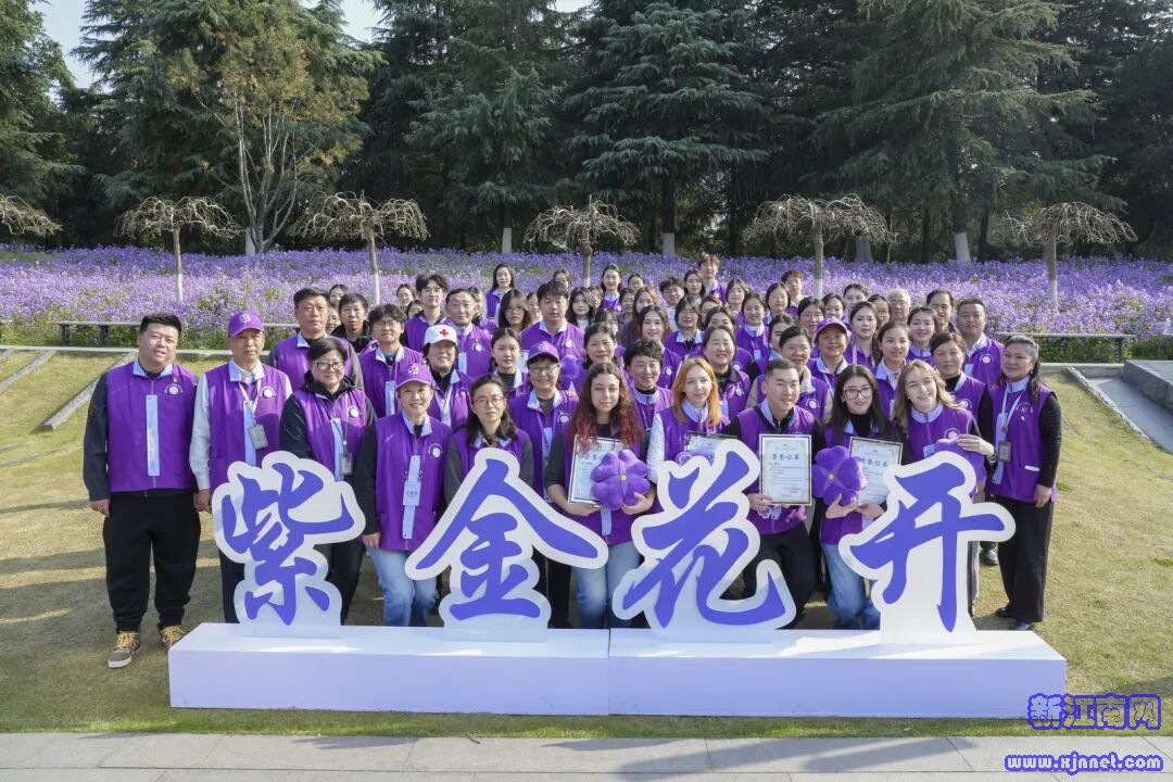 阳光下,紫金草花海随风摇曳,紫色的花浪承载着和平的期许。中外志愿者并肩合影,笑脸被定格在镜头中,一张张照片拼成一株繁茂的紫金草图案。愿紫金草常开不败,愿志愿精神汇聚成光,把南京的和平故事传向世界。