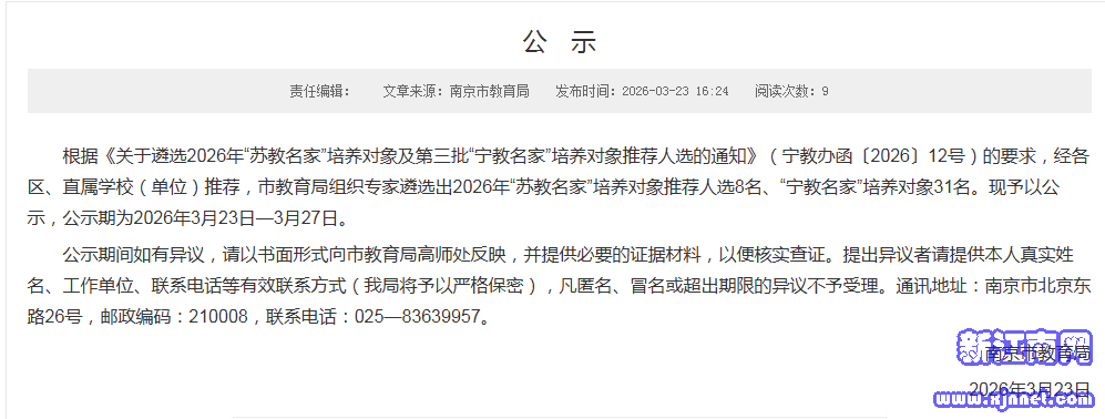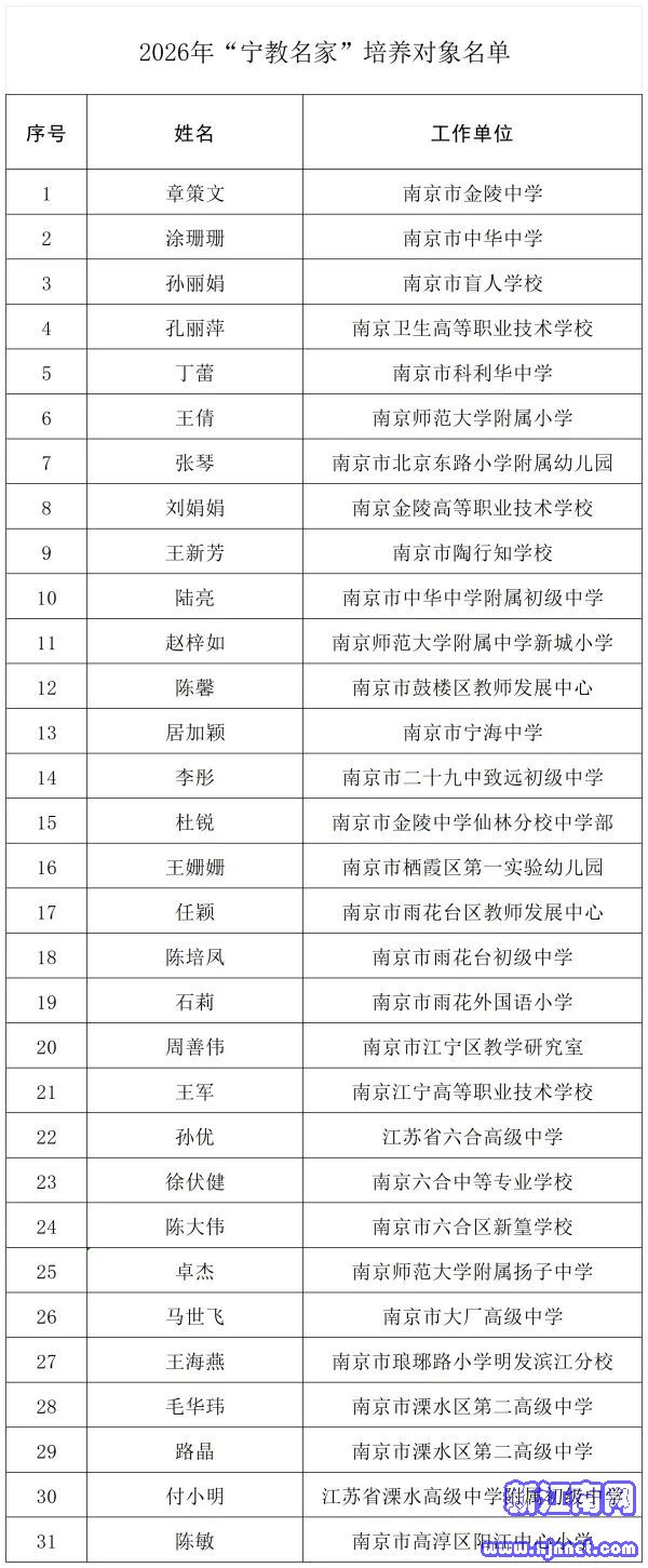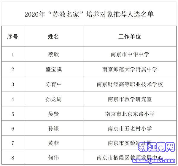 交汇点讯 今天,南京市教育局发布《关于遴选2026年“苏教名家”培养对象及第三批“宁教名家”培养对象推荐人选的通知》,快看看,有你认识的老师吗?