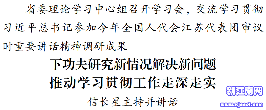 交汇点讯 4月21日,省委理论学习中心组召开学习会,交流学习贯彻习近平总书记参加今年全国人代会江苏代表团审议时重要讲话精神调研成果。省委书记信长星主持会议并讲话。