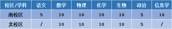 学科特长生南北校区招生计划共105人,其中南校区60人,北校区45人。