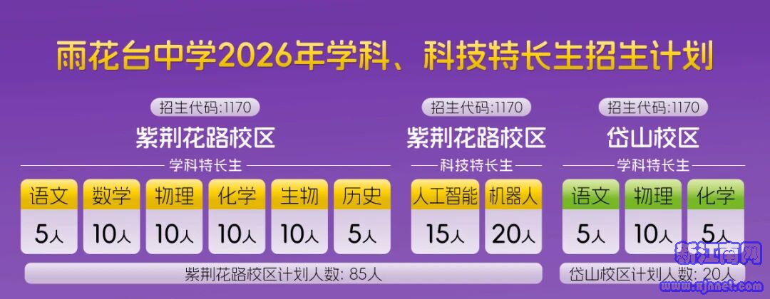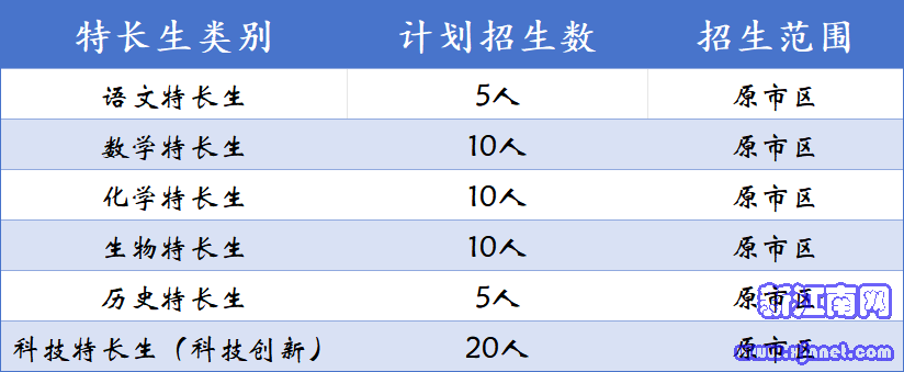 【金陵中学】学校开展政治、语文、数学、物理、信息、化学、生物学科特长生和科技创新特长生的招生工作。