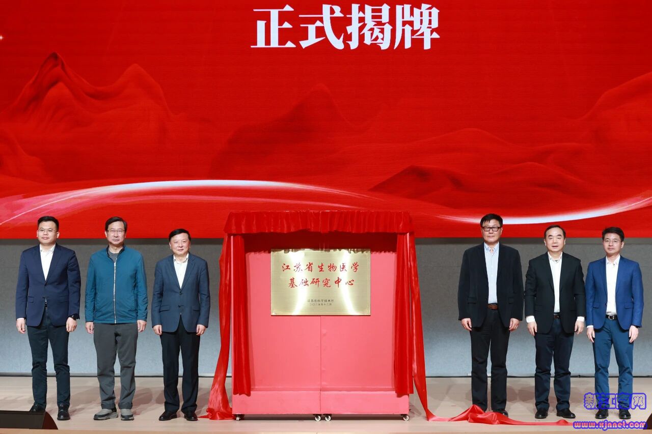 徐光辉、饶毅、王志新、张晓宏、徐积明、张桥共同为“江苏省生物医学基础研究中心”揭牌。