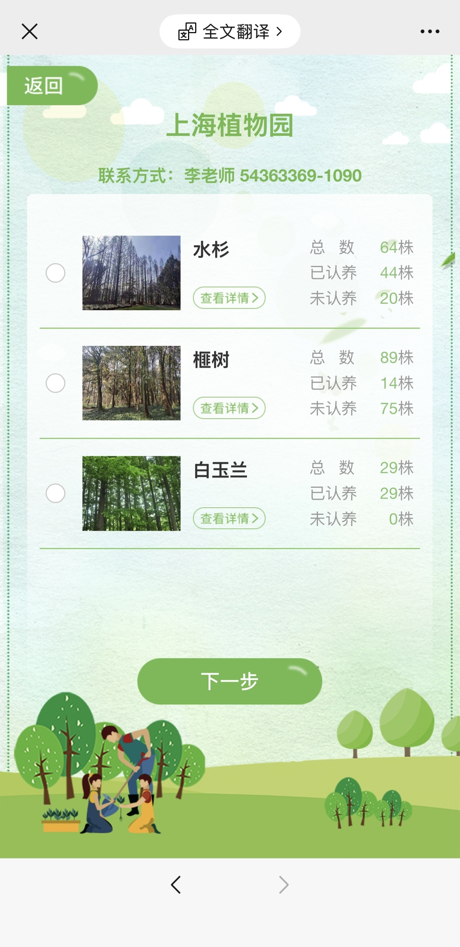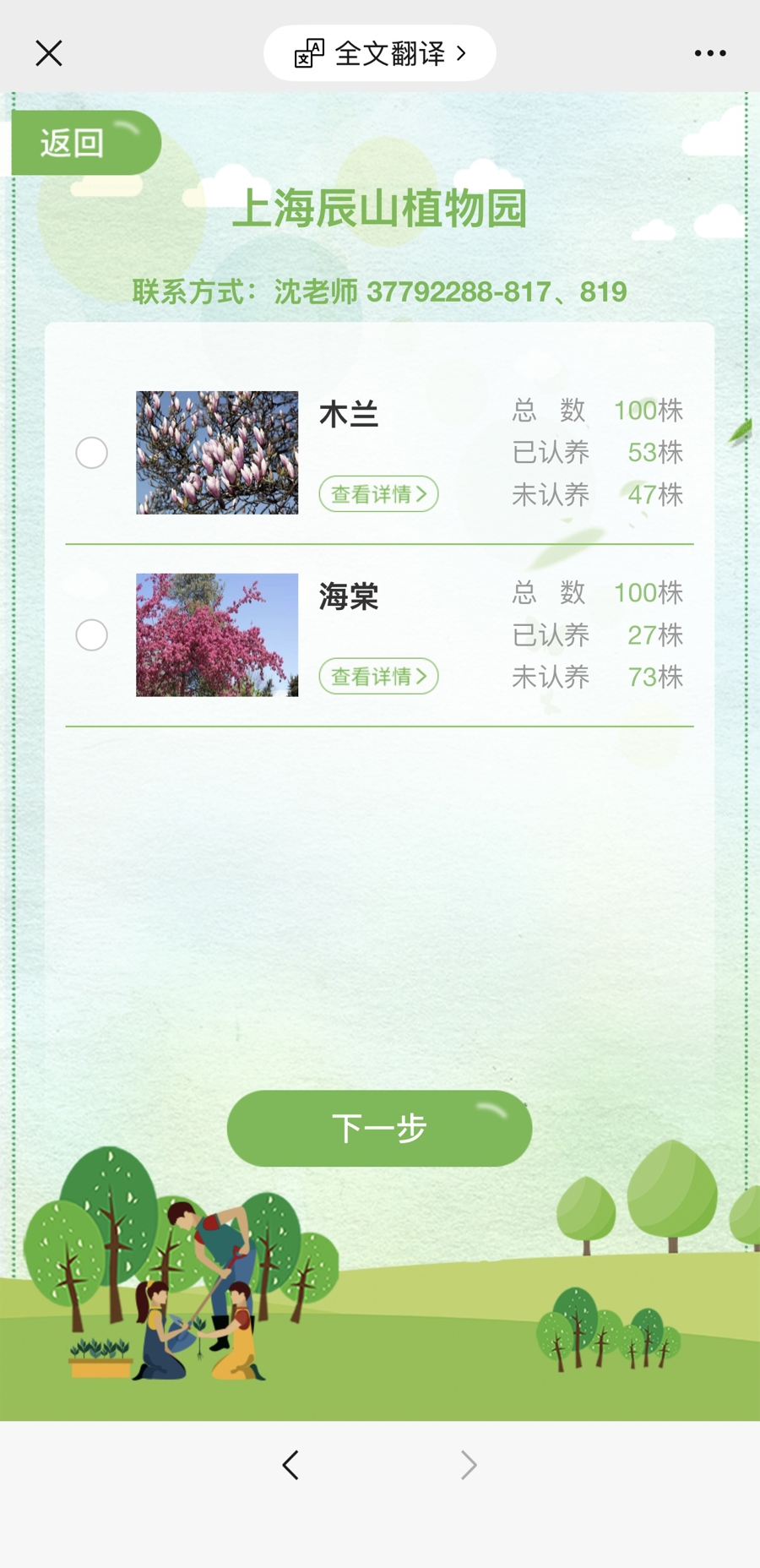 辰山植物园可认养的树种为木兰、海棠,各100株。截至上午8时,平台显示已分别被认养了53株和27株。园方表示,认养有效期为一年,去年认养的市民可一键续认,电子树木认养证书会同步更新。