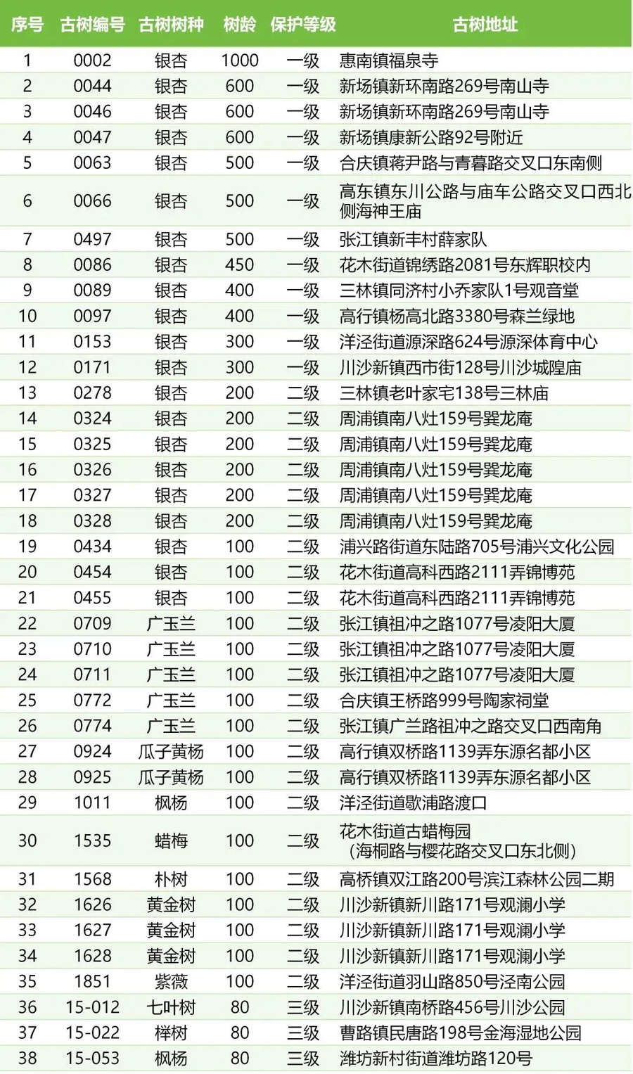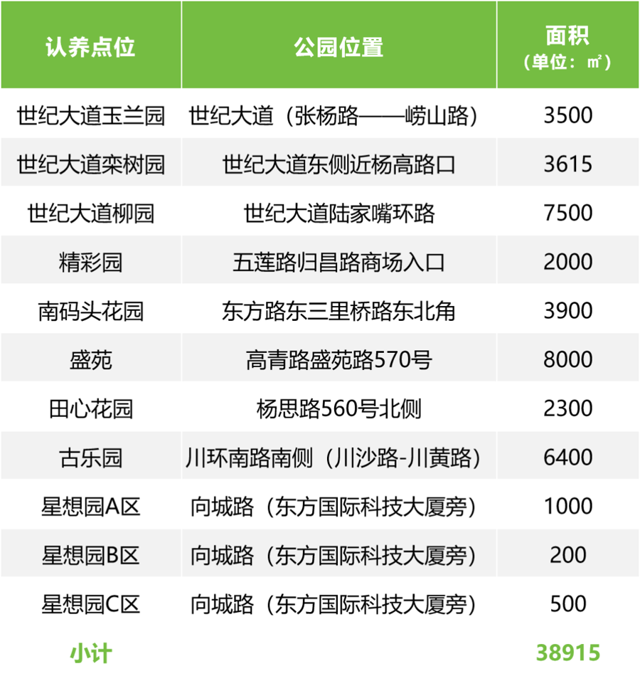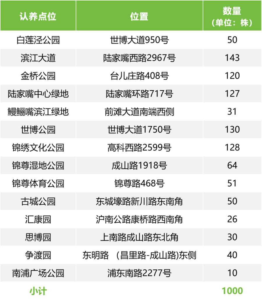 各区也开放了多座区属公园绿地里的植物供认养,市民在家门口就能为植树护绿尽一份力。比如浦东今年有1000株公园树木、38株古树、3.89万㎡的公园绿地开放认建认养,其中以白玉兰为主的玉兰类共120株。新民晚报记者从浦东绿化管理中心获悉,截至今天上午,浦东古树认养还剩最后一株,市花白玉兰也已所剩无几。
